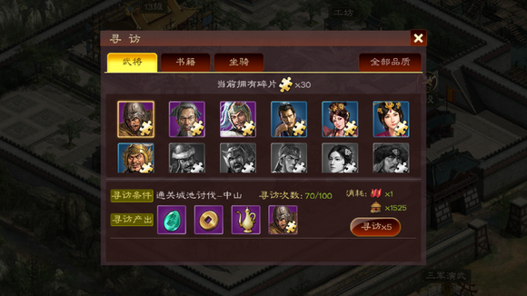 由于姜维,蔡琰,曹仁,马腾都是游戏中赠送的,我们也是升星资源获取方式最简单的,通过在游戏中的巡查所就可以知己寻访,每张拜帖可以寻访5次,每天可以100次,也就是20张拜帖,大约可以给到50个橙色将魂。