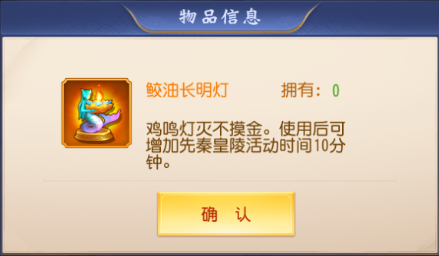 进入皇陵会消耗活动时间,这个活动时间每天会有免费的10分钟,这个时间可以累加的,上限是七十分钟。除了每天免费的活动时间,还可以通过消耗鲛油长明灯来增加时间。该道具目前可以直接在商场消耗玉璧或者元宝进行购买,也可通过饕鬄与庆典活动兑换取得。