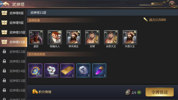 11级开启挑战副本,定向产出各种材料,每天必刷。每天攒下的绑定元宝可以购买特别缺的材料的副本次数。跟着任务培养一下武将即可升到12级。