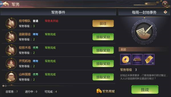 23级开启军务,放置挂机类的,武将越多越强收益越大,获得的积分还能在军务商店换东西。