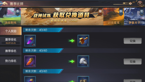 17级开启赛季比拼系统,不消耗体力,等体力用完了回来肝一肝,能换橙将,还有各种好东西。每个季节有排名奖励,送毕业装备,可以交易的那种哦!
