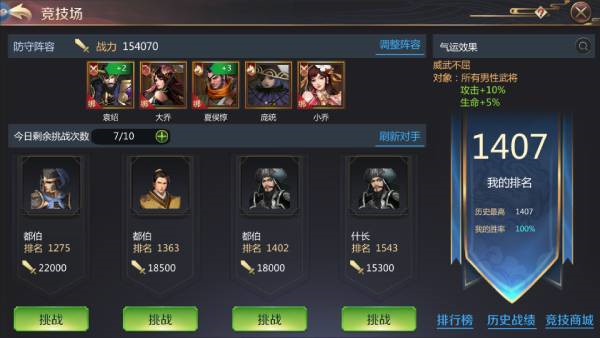 20级开启新的武将位,一定要在第一天开出来,多带1个武将打竞技场可谓如虎添翼。竞技场可以买一些次数,尽量打到靠前排名,有丰厚奖励。