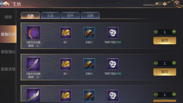 6级开启匠工坊,可以进行装备打造,将极大提升部队战力。