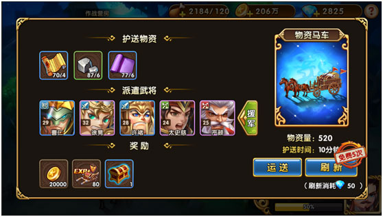 2、 【护送物资】:选择不同的马车护送物资,马车越高级奖励越丰厚