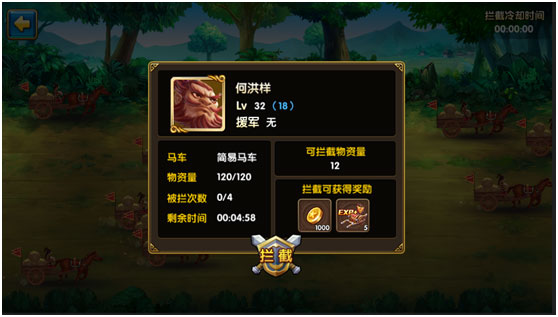 每次拦截成功后需要等待一段时间才能再次拦截,等待时间随着拦截次数的增加而延长,所以别把时间浪费在蝇头小利上,有好的队伍就去拦截更好的马车吧。