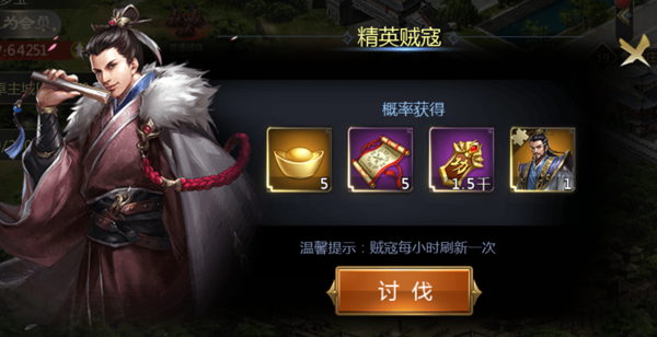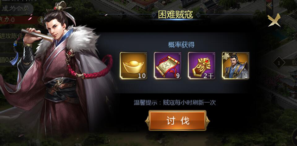 其中贼寇分为普通贼寇、精英贼寇、困难贼寇,不同等级的贼寇,其通关奖励不同哦。