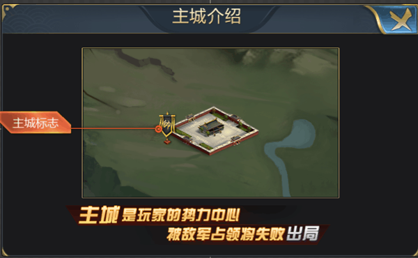 主城说明:城市左侧带有“帅旗”的城池即为主城(计策【洞若观火】可查探出主城)