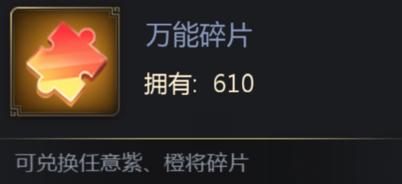 2.万能碎片可根据武将品质按一定比例兑换已拥有的武将碎片