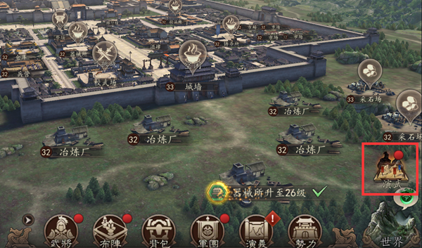 无论在主城还是世界界面,玩家都可通过画面右下侧的“演武”图标进入副本挑战界面。