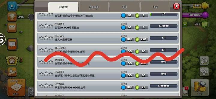 奖杯达到一定个数的时候可以领取宝石,水晶杯领250,大师杯领1000,冠军杯领2000(emmm,作为新手还是好好发育吧,等村庄足够强大,你的杯自然就上去了)