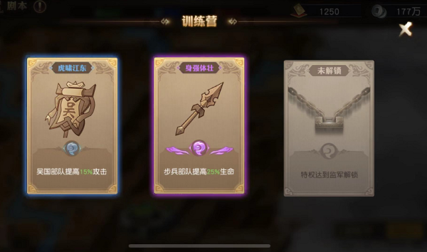 在整个阵容中一共拥有2弓手、1盾兵、1谋士、2步兵、2轻骑的组合,在该阵容中主要是依靠步兵来进行输出,而盾兵则是保护后方比较脆的弓箭手。轻骑由于西凉骑兵的加成效果可以造成大范围的群体伤害。