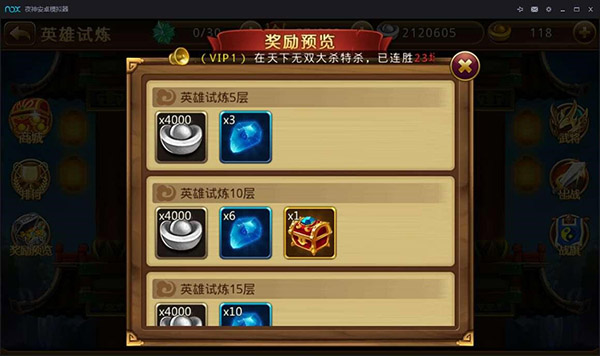 银两产出的地方比较多,就不一一诉说了,简单说下三个主要的地方。第一,白门楼战吕布,上面说到元宝,就留给这里,你对吕布造成的伤害越高,银两就越多然后用元宝加次数,每天花500-1000元宝(只要不乱花,元宝绝对够)加次数,会有不错的收获。第二,群雄逐鹿抢地盘,除了每天偷窃10次,大家可以集中兵力占领一个城池(个人认为上方安全),然后快速出来,留一个武将守城,把你的城池数占满,选一个资源较多的城池常驻,运气好的时候,其他的城池不会被发现就算被抢了,你占领期间的资源也都归你,所以别怕麻烦,偶尔上线打打城池,还能捡其他高战玩家打下来,他可能一时半会不上线,你可以先用。第三,英雄试炼,战力提高了,或更换强力的武将了,一定要去打英雄试炼,每天打不过之后,或急缺银两可以扫荡,每天5次,可以拿到不少银两。