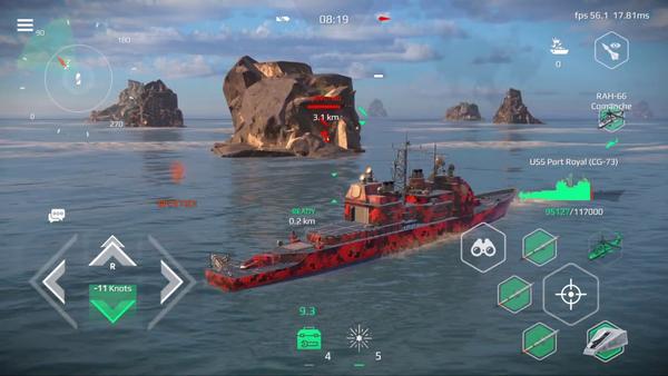 游戏的玩法换汤不换药,玩家控制战舰,在有限的海域不断击沉对手,就可以赢得胜利。游戏本身是第三人称视角,左侧控制方向,右侧控制导弹、望远镜等,射击方式采用自动锁定,操作难度基本没有,但可玩性却丝毫不差。