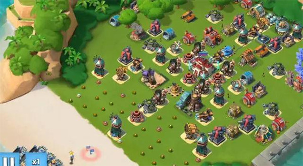 基地建设:玩家需要在岛屿上建立和升级自己的基地,包括资源建筑、防御塔和军事设施。