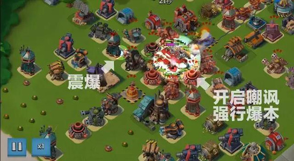 (4)爆本:布利特开启全体嘲讽,机器小怪协助,妹妹清理掉大本上方的关键防御武器,清理出安全区,直接爆本。