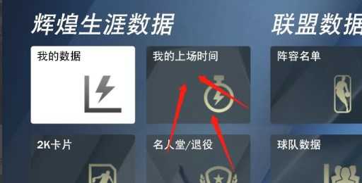 2、进入菜单当中,点击“数据”,找到“我的上场时间”。