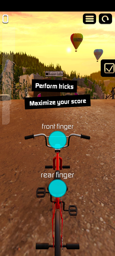 5、等待一会加载即可进入游戏,游戏则采用双指操控方式,玩家需操控单车完成特技表演;
