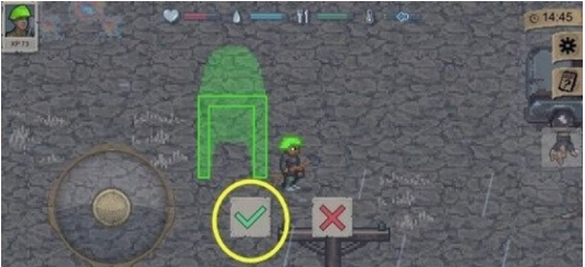 2、点击帐篷图标,然后按deploy,出现虚拟帐篷,移动放置位置,直至由红变绿,打钩就好了。