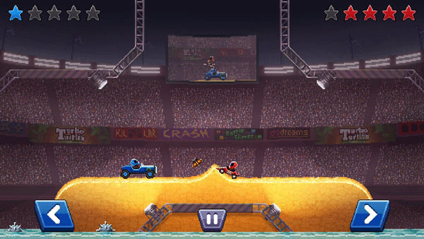 撞头赛车最新版是一款竞技场赛车游戏,以其独特的游戏玩法和多样化的车辆选择而闻名。玩家可以驾驶从怪兽卡车到外星飞碟等上百种车辆,在不同等级的赛道上进行刺激的动作游戏,目标是用车辆重击对手的头盔,制造大量车祸,打败对方。
