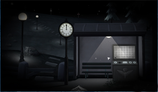关键要素:钟表和火车路线图。观察发现,火车机器缺少一个按钮→,所以首要任务是寻找这个部件。不过解谜顺序相对灵活,我们按场景从左至右逐步解决。