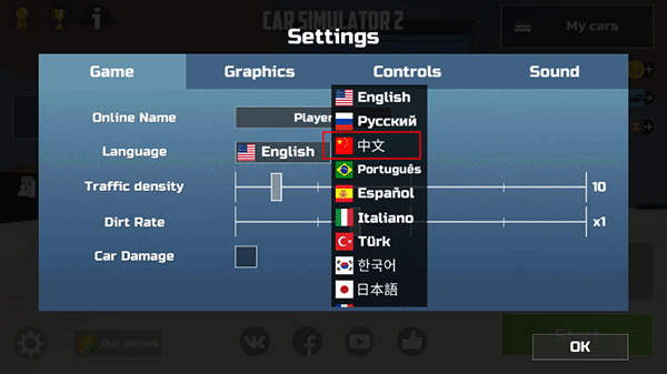 2、在语言选项中找到国旗图案,点击并选择中文,确认后即可成功切换至简体中文。