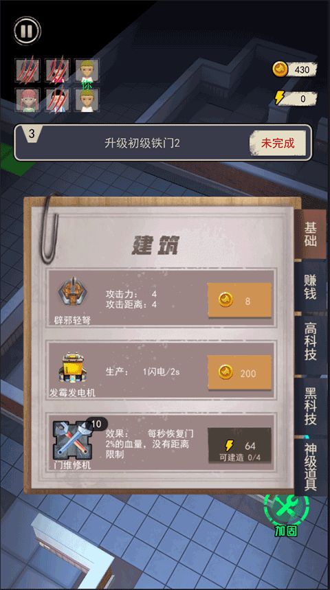 3、利用获取的资源建造防御塔,防御塔需合理布局在宿舍门口、窗户等易被攻击的位置,形成交叉火力。