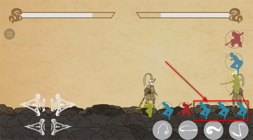 上面的圆形按钮用于展示特定的技能,包括三式棍、坚不可摧的身体、身体固定和其他强大的动作。