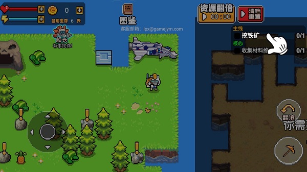 游戏背景:意外坠机荒岛的主人公需要在岛上生存下去,收集资源打造武器,收集宝石修复飞船,最终成功逃出!