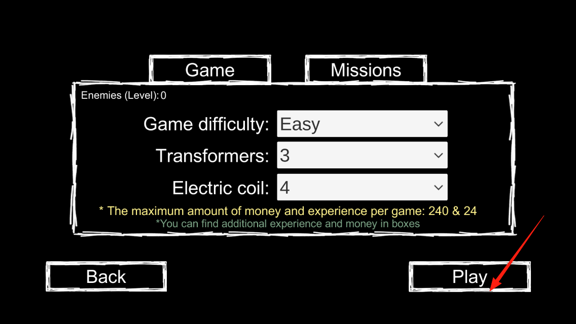 3、设置游戏难度、变形器等参数,确认后点击Play进入定制化游戏场景,按设定规则开展冒险,体验参数配置玩法。