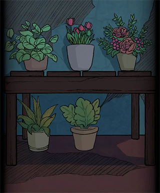 11、想起之前的猫头鹰,返回修水管界面,点击几盆盆栽引出壁虎,跟踪其位置并用玻璃瓶装好,获得壁虎。