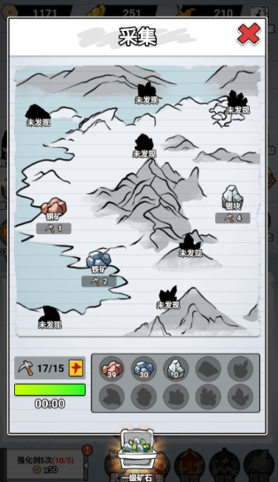 2、进入采集界面,获取更多矿石资源,用于锻造、升阶你的神剑。
