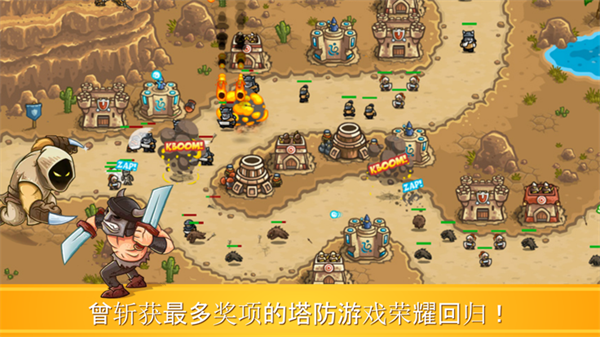 八种全新专业防御塔升级!你可以用弩兵堡垒、强大的圣殿骑士、亡灵甚至地震机切开、烤焦和践踏你的敌人 —— 嘿,我们告诉过你会动摇一切的。