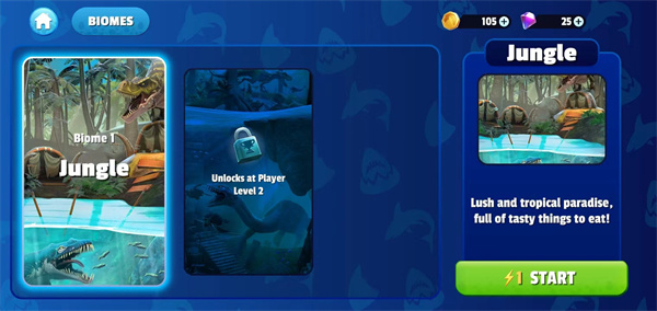 1、在游戏中选择了自己喜欢的鲨鱼种类后,就可以去不同的海域探险,了解这种鲨鱼的生活习性和一些属性。
