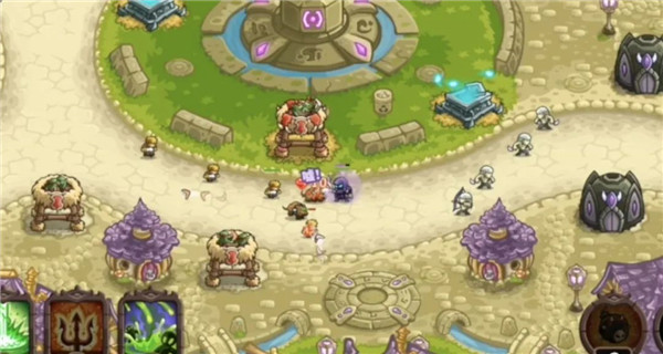 如:老城回廊这场战役,敌军会从上下两路进攻我方阵地,且前期的杂兵数量较多。所以在前期经济不充裕的情况,优先在T字路口建立两个炮台保证输出,利用英雄维鲁克的英雄技能与呆头鹅组成初期拦截攻势,就能顺利发育到后期。