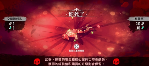 但是一旦死亡,主角身上的金钱、武器和芯片都会丢失,出生点右侧的复制人数量也会加1说明刚刚的“你”已经死了。