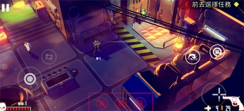 1、射击,击杀,装弹,继续。在这部射击游戏中,玩家可以在基地重生、装备、升级,然后选取战斗任务,尽情享受双摇杆操作射击带来的刺激和畅快;