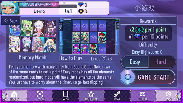 Easy难度下每1分可获得5倍Bits,每10分可获得一个Gems;Hard难度下每1分可获得6倍Bits,每10分也可以可获得一个Gems。