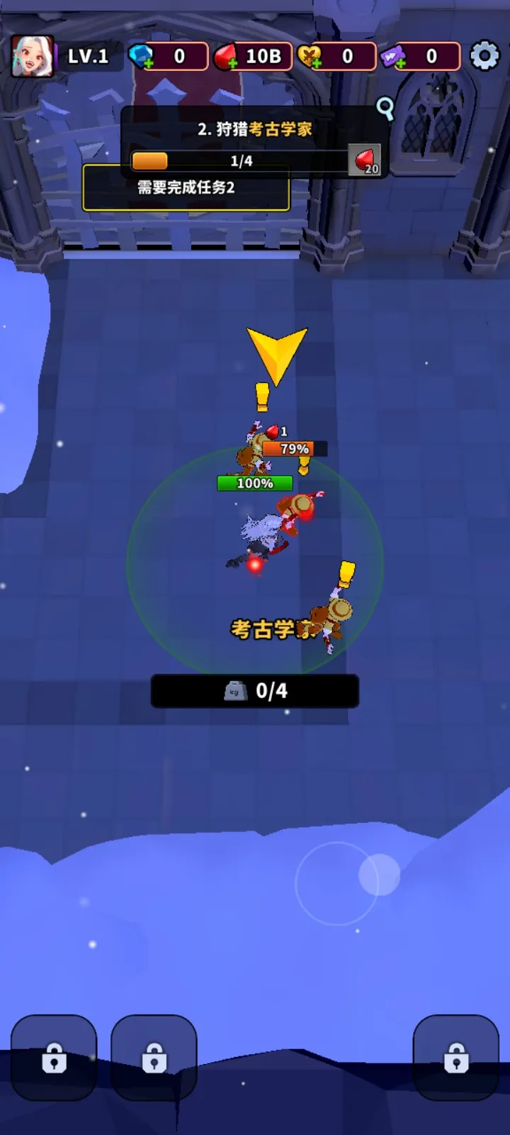 1、我们只需要通过滑动屏幕操控角色移动就可以了。
