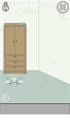 -第六天:第一个场景柜子里看到一个气球,抽屉里有枚钉子,第二个场景电视下面抽屉里有胶带,拿到以后回到第一场景,胶带贴到气球上,拿钉子扎,气球没气以后,点击得到钱!完结!