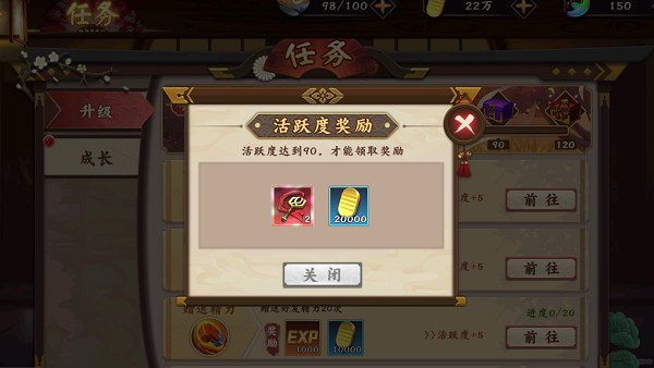 通过完成每日任务可获得活跃度,累计到一定的活跃度可以打开奖励宝箱,里面会有丰厚的金币奖励以及其他一些稀有道具~