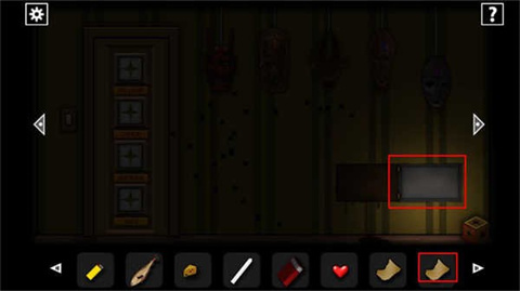 用钥匙打开门后,进入一间储藏室,在柜子里找到了一支蜡烛。在墙上发现一把小刀和一条鳕鱼,都拿走。在冰箱上层里发现一块奶酪,而下层中只有一片骇人的鲜血。