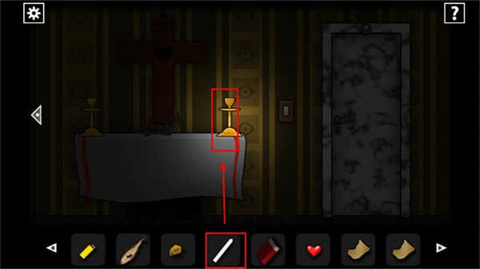 7、向右走来到有着烛台房间当中将蜡烛放到烛台上面,在桌面上面可以找到鹿角。