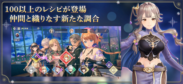 玩家可以使用获得的素材,由多名炼金术士协力进行调和。获得配方后,选择一起调和的角色及素材,善用角色的「天赋颜色」及特性制作道具。