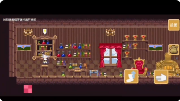 1、利用虚拟摇杆控制角色跳跃,通过窗户上方的平台移动,探索房间右侧区域,留意红色王座等互动点,寻找开启闸门的关键机关或道具。