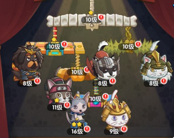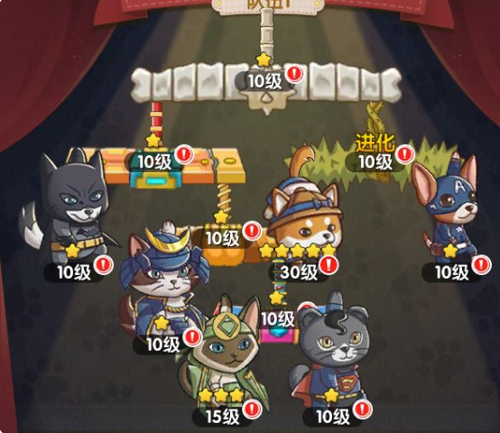 首先派出的是游戏前期国标队,分别是:橘猫、美短、孟买、金毛、沙皮、缅因。拥有多种类型于一体,非常全能。这支阵容的优点就是获取方便、培养简单,前期过渡首选。