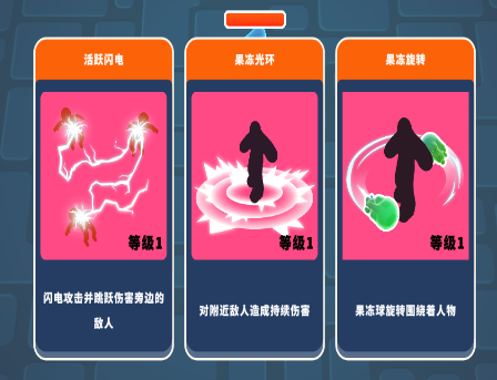 开始游戏后玩家只需要控制果冻人移动,然后释放技能即可,不同的技能拥有不同的冷却时间,在游戏中升级后玩家还可以继续学习新的技能或提升各种属性。
