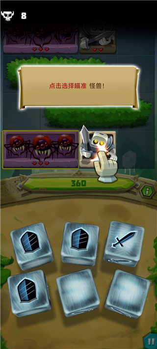 10、第二关当中新增了怪兽敌人,点击瞄准怪兽,再滑动屏幕转动骰子即可;