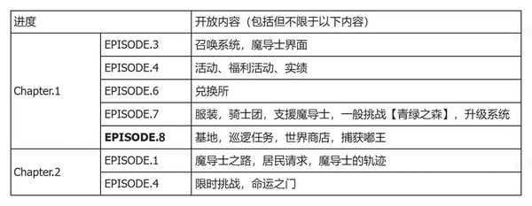 请魔导士们参考一下进度/解锁内容对照表咩:
