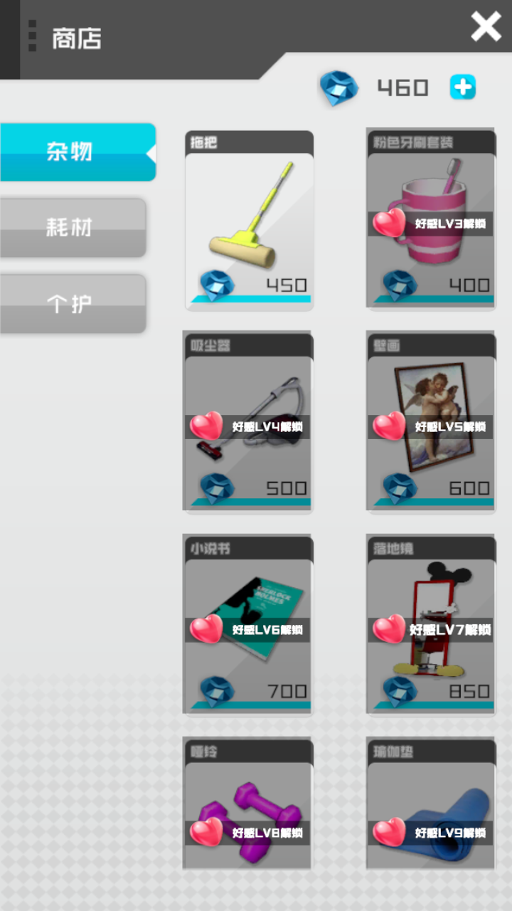 8、随时观察:超轻松自由的女友养成玩法,在任何时候去她房间,边搜索资源,边观察她的一举一动