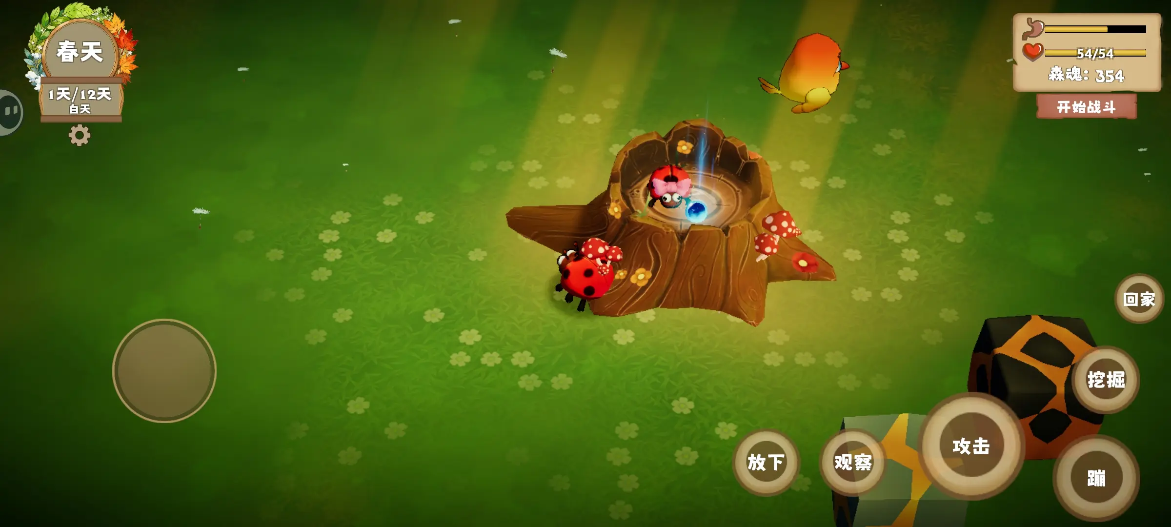 2、观察功能允许玩家长按特定物体或生物,触发信息提示,了解其生态属性,部分观察成果可解锁图鉴内容。